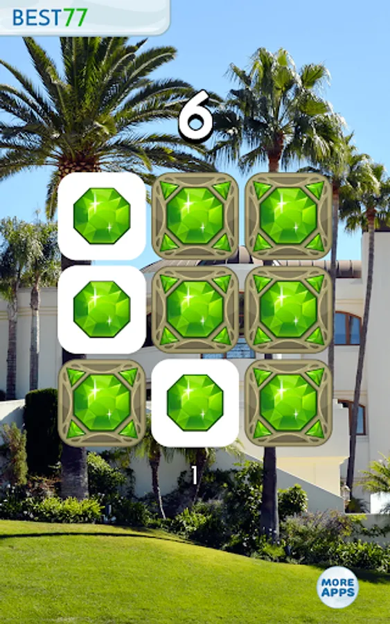 Can you memorize and recreate pattern of tiles with gems on 3x3 board? Can you do it on 4x4, 5x5 and 6x6 board? You have only one second to memorize a pattern. Looks simple? But is quite difficult. So, take a challenge and test your memory in this addicting brain teaser!