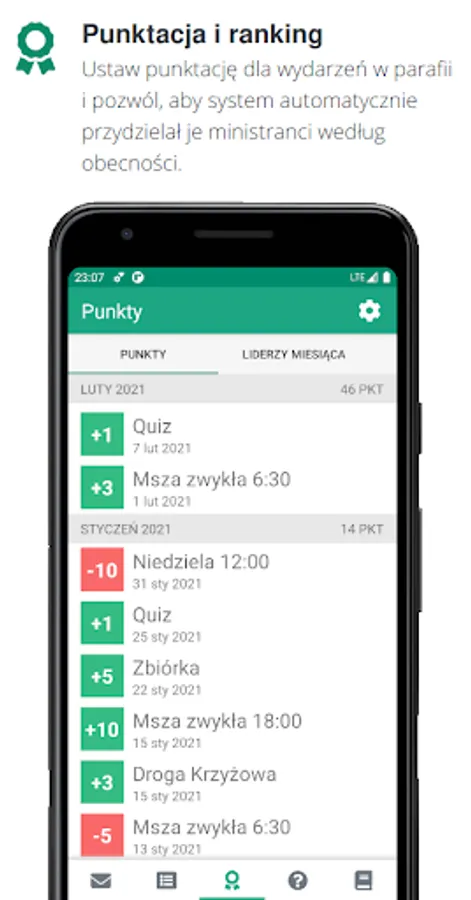 Set a score for parish events and let the system automatically assign them to altar servers by attendance.