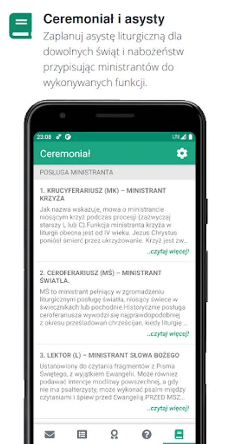 Plan masses, services and meetings according to your needs, assign duties to selected altar boys or groups.