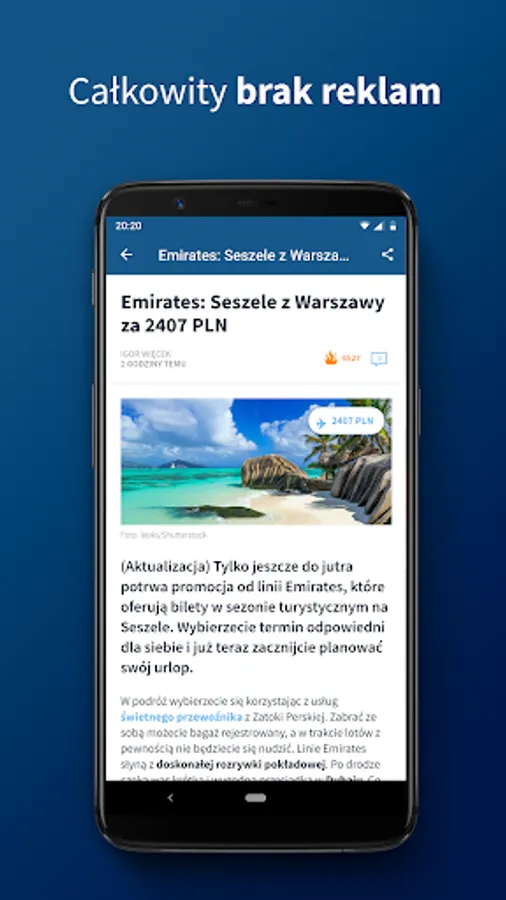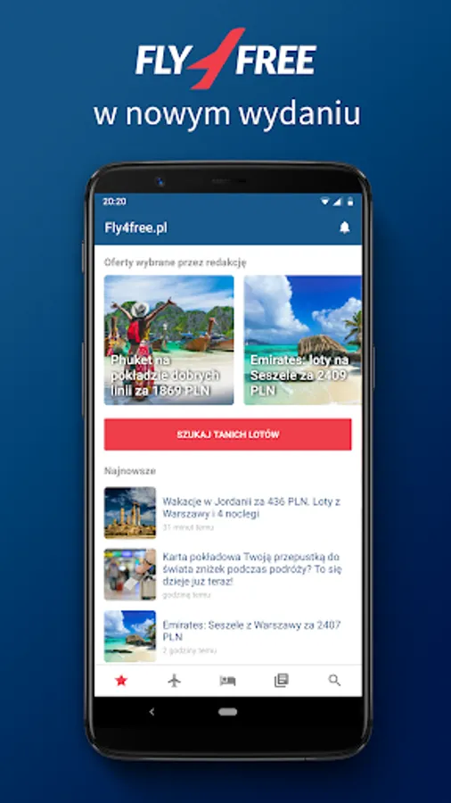 The application allows you to view Fly4free.pl on your phone. The cheapest airline tickets, hotel accommodation and other promotions for travelers are within your reach.