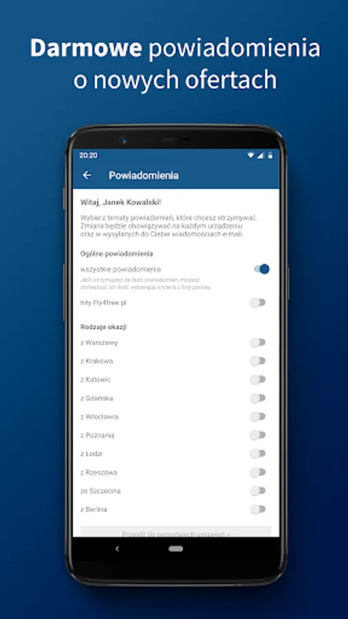 Do you have an idea for a new function? Did you find an error? Send us a message to the following e-mail address: aplik@fly4free.pl.