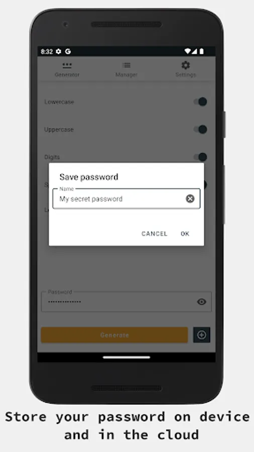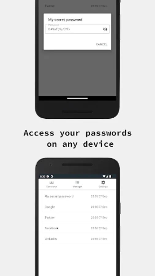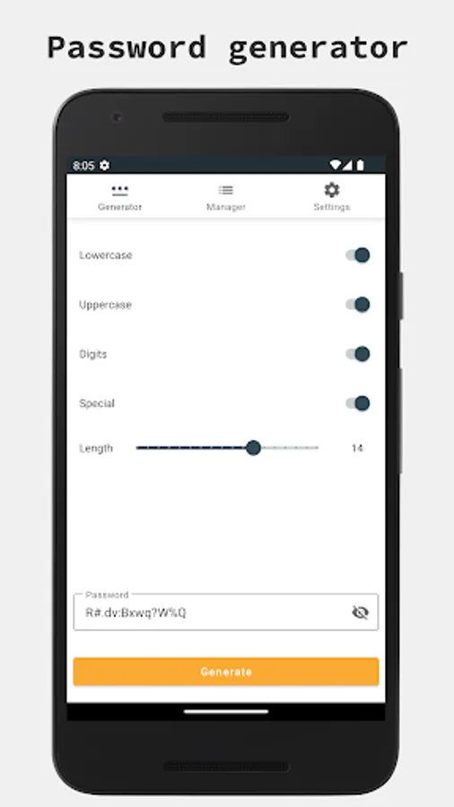 Simple and intuitive UI allows to generate password that will follow all security policies required by websites.