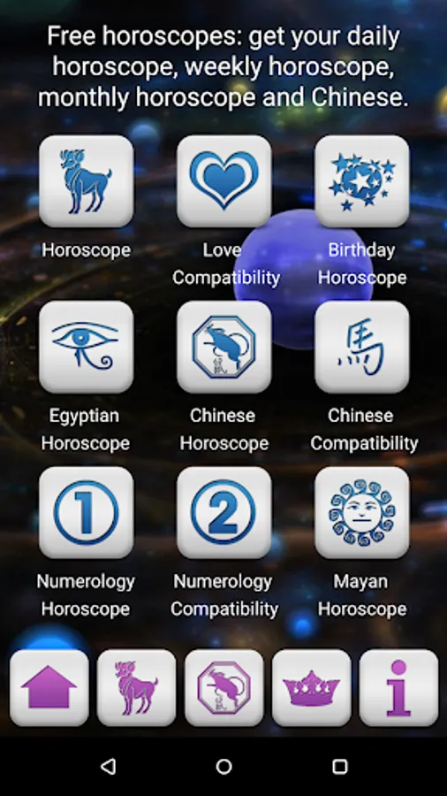 This app features a wide variety of Daily, Weekly and Monthly Horoscopes, along with Zodiac Sign Compatibility and Tarot Card Readings.
