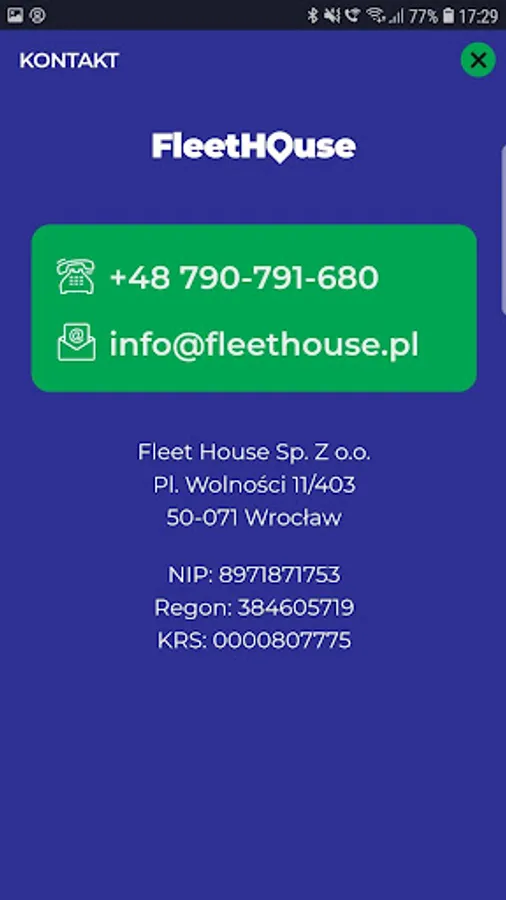 The FleetHouse mobile application allows you to control the current working time of drivers.