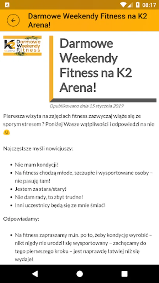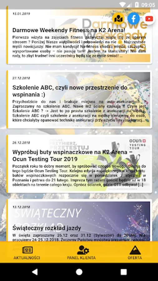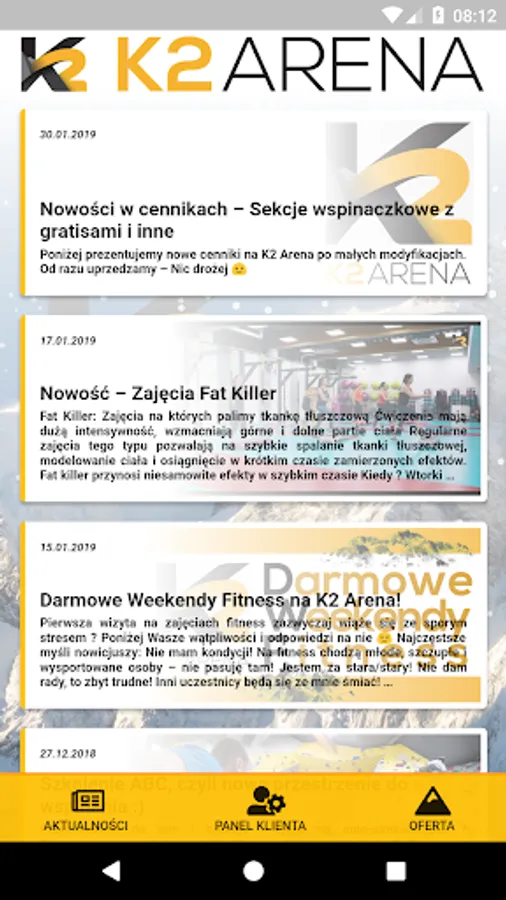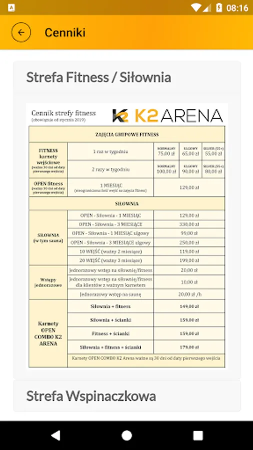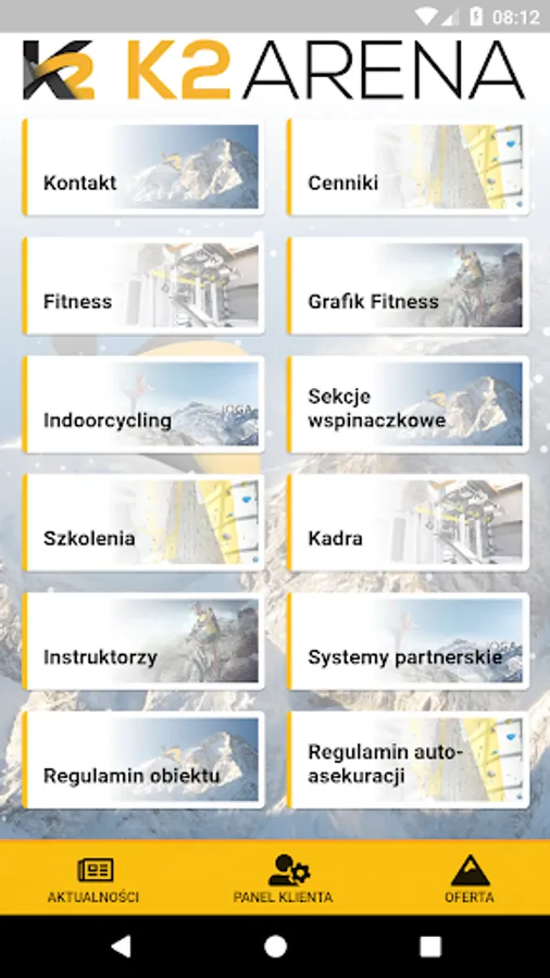 The K2 Arena provides a variety of activities. In the gym or fitness room graph, we can find, among others, Yoga, Zuma, TRX, Cross, Pilates, Step Power, Body Ball and special classes like "Flat stomach", "Super Buttocks" or "Healthy spine". There are also Indoor Cycling group riding lessons on the most modern bicycles in the province - Tomahawk IC6 (currently Life Fitness). In this case, we have a choice of different types of activities - Power, fun or start. You can come with children - from the age of 4 you can leave your kids in the playroom under the care of the animator present from the hours from 15 to 21. You can register for classes online. Detailed offer and graphics of climbing and fitness classes are available at www.k2arena.pl.