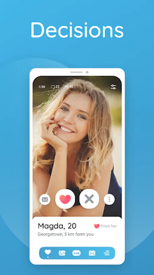 In the free dating app, you can vote Yes/No on selected profiles, as well as rate and comment on photos. This feature provides a great opportunity to initiate a conversation with someone who has caught your interest and find a potential match.