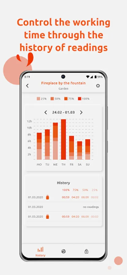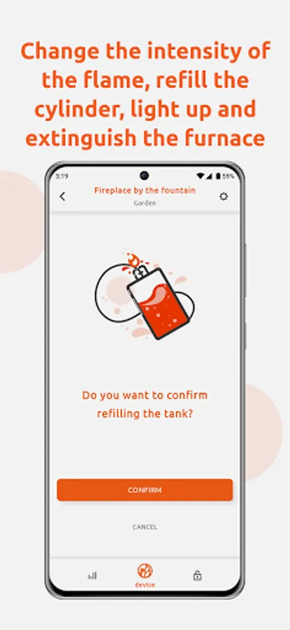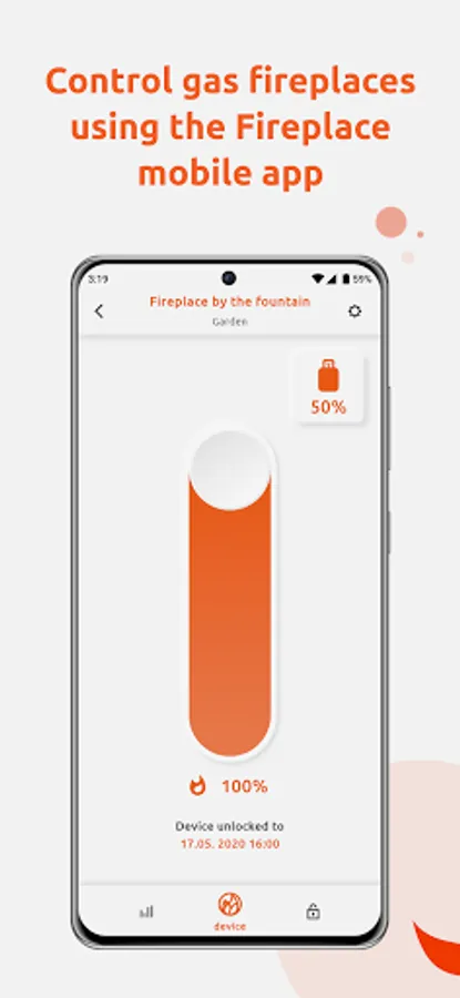 Start and stop the fire, change the flame intensity or monitor your gas bottle levels - all that directly from your smartphone. Store the history of usage for multiple fireplaces.