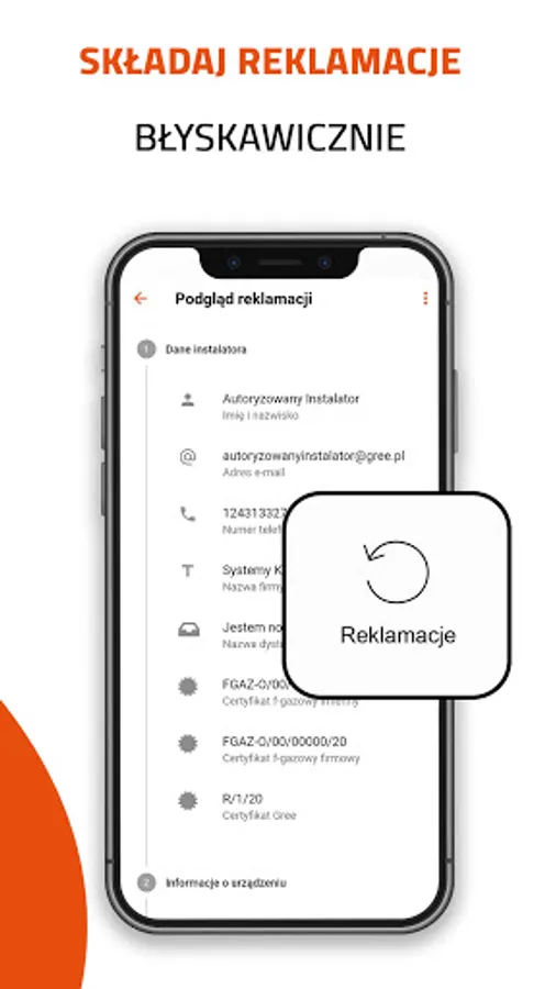 The Gree application will remember all your installations: you will save here customer data, types of devices installed, and dates of their installation. You will be able to select devices from a ready-made list or scan their barcode. The application will also help you meet the GDPR information obligation towards your client.