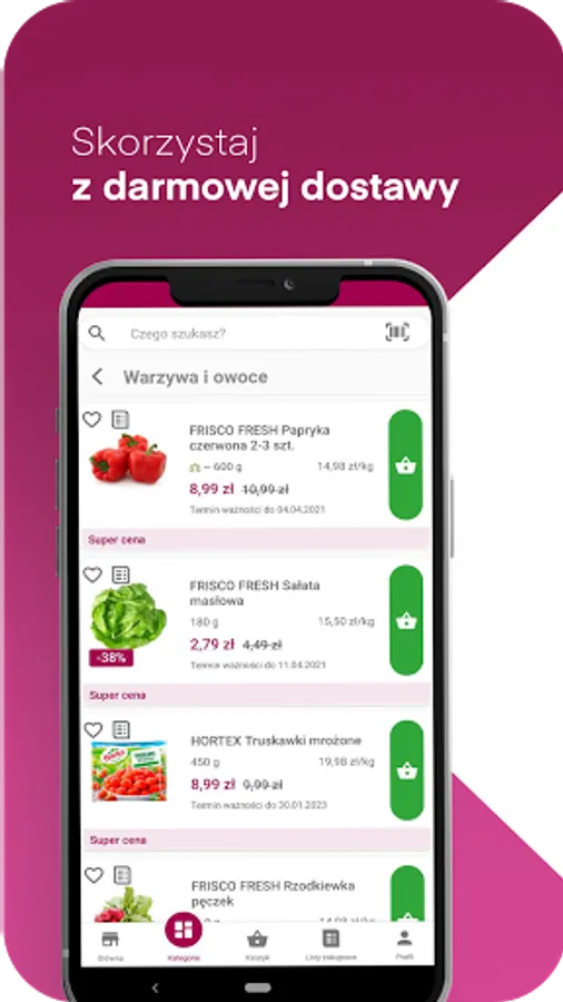 Frisco is a leading Polish online grocery service selling food, health and beauty products, delivering orders straight from our fulfillment center to your door. Frisco mobile application gives you access to thousands of products right at your fingertips. You can stop wasting your precious time on going to supermarkets. To place an order simply book a nearest one-hour delivery slot that fits your day plan and let your groceries come to your door. Frisco makes your life easier, here's just a couple of reasons why: