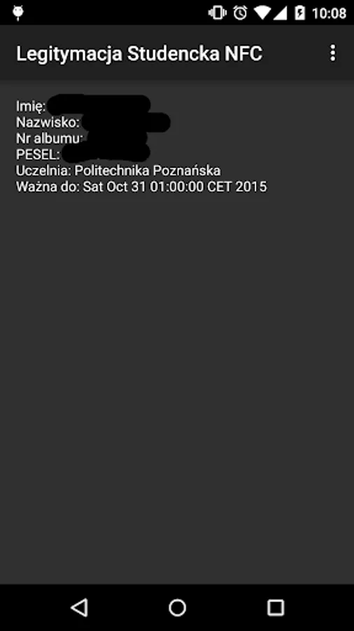 The application test of legitimacy issued by the Intercollegiate Student Identification Card Personalization Center in Poznań.