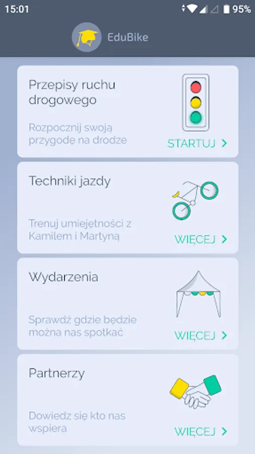 The tool is aimed at both children and adolescents in school age as well as adult cyclists. Thanks to the application, they will gain knowledge of traffic regulations and acquire appropriate skills that will help them to safely travel on public roads.