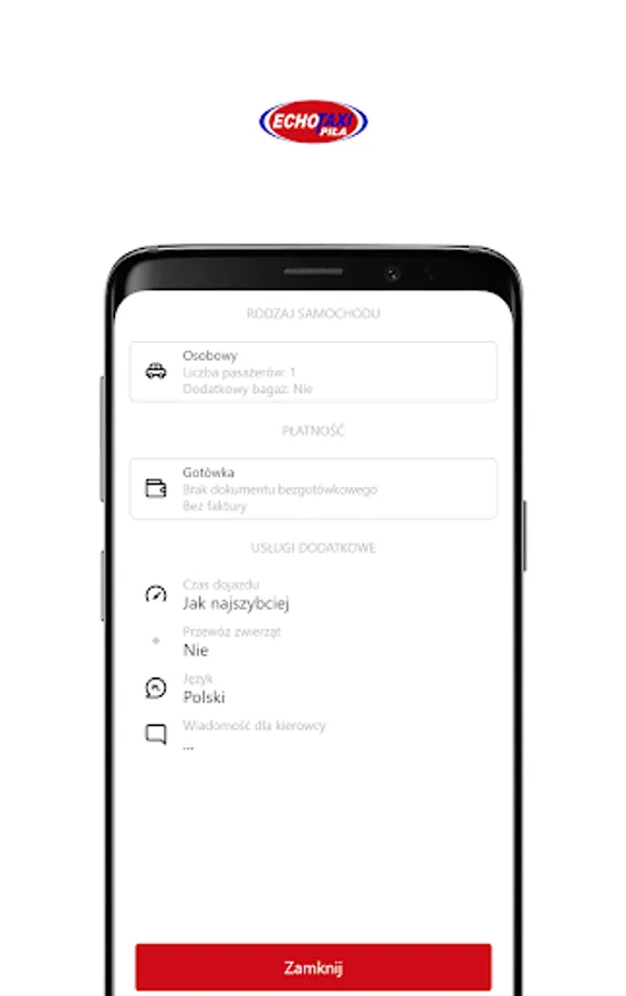 It's really simple! You don't have to call anywhere - the Echo Taxi Piła application is enough. You do not need to have cash with you - we accept payment cards. You do not need to know where you are - your GPS will tell us and we will come to the point.