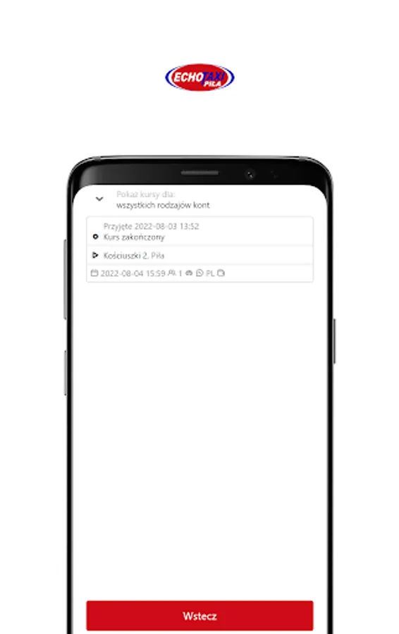 With the Echo Taxi application, you can order transport in the city of Piła and the surrounding area. Tap "ORDER" or enter the address where the taxi is to arrive in the Taxi Echo Piła application and in a few moments we will be there.
