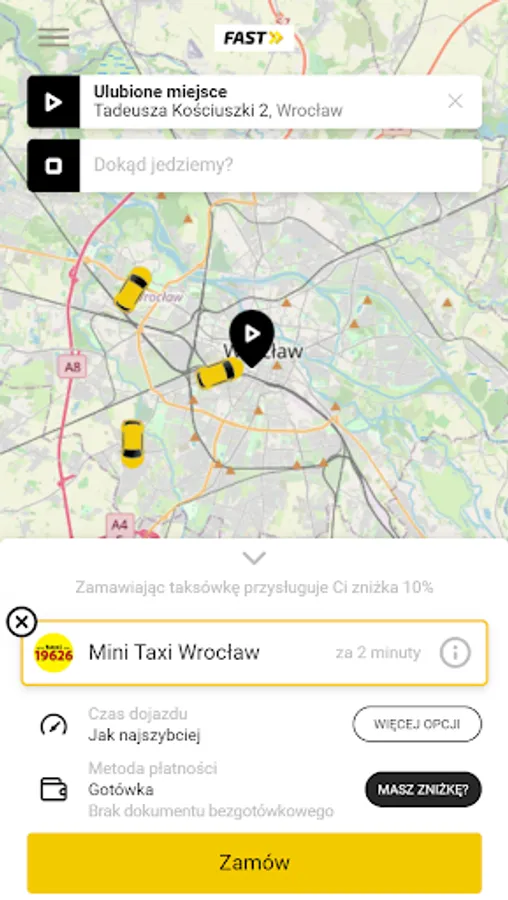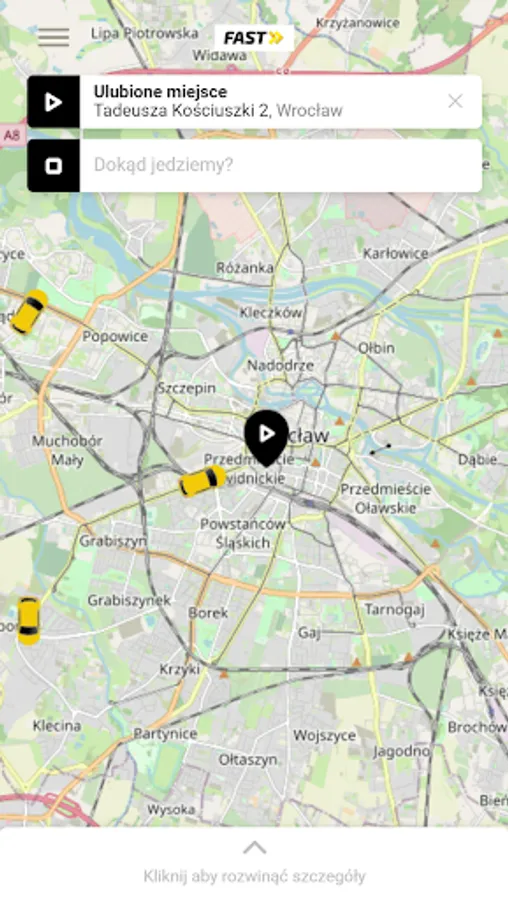 An application for ordering a ride in FAST Wrocław. Order quickly and efficiently online.
