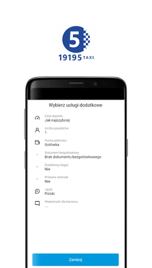 Do you need a car with a large trunk or a bus? Select the appropriate vehicle type in the application and travel comfortably. The Taxi Piątka application will meet many of your needs. All you have to do is select the appropriate option or write in the message what you want.
