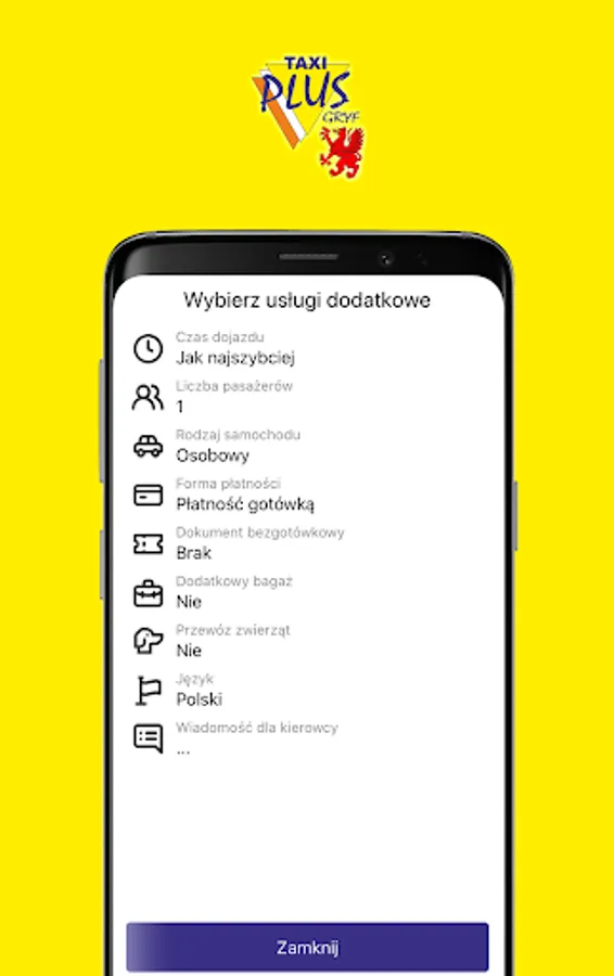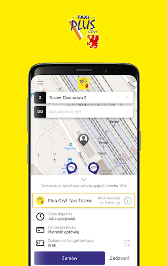 Application for taxi service in the company Taxi Plus Griffin Tczew. Order quickly and efficiently online.