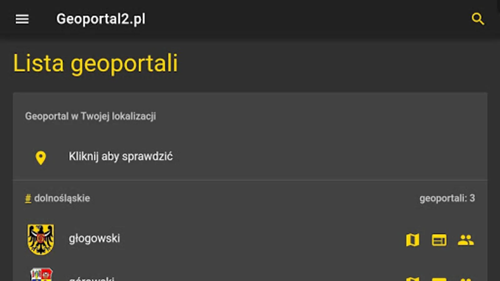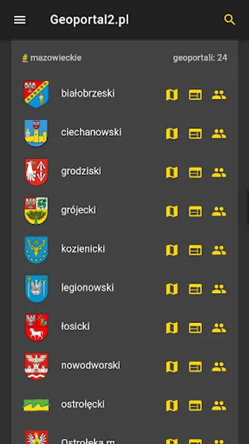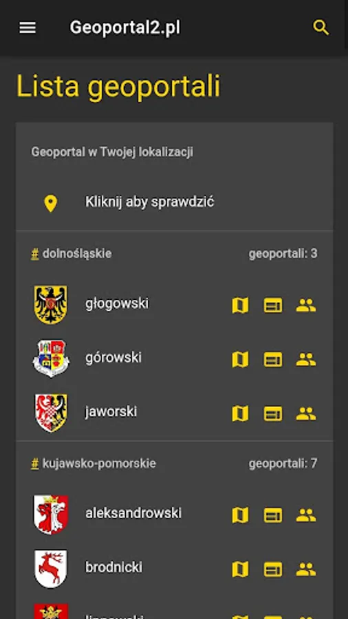 Application enabling browsing of poviat, municipal and commune geoportals in GEOBID's GEOPORTAL 2 technology.