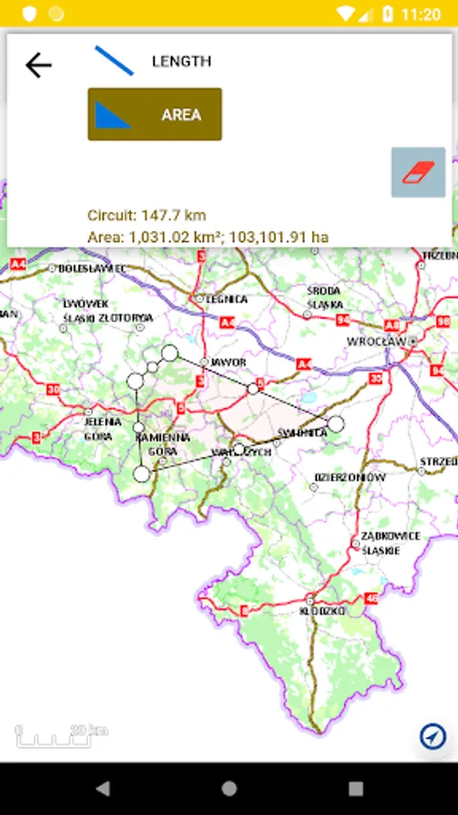 b. navigation in the map window - moving, zooming out, enlarging the map view,