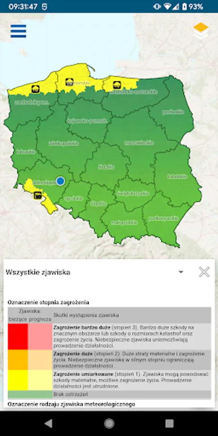 Information about the location of the device is necessary for the basic functions of the Application to operate, in particular to inform the User about potential threats and other dangers related to natural phenomena related to the current position of the User, for this purpose the application also downloads information about the location in the background. The collected data on the obtained location of Users is not stored and made available to third parties.
