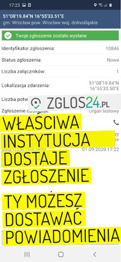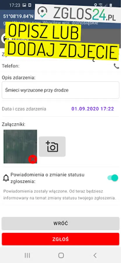 Start the ZGLOS24.PL application and send the application in 12 seconds, which will be automatically sent to the appropriate institution. No registration and no personal data provided!