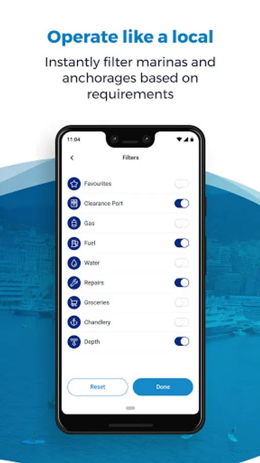 Operate like a local, know all the best spots and the facilities on offer, even the depth of the fuel dock. Instantly filter marinas and anchorages based on requirements