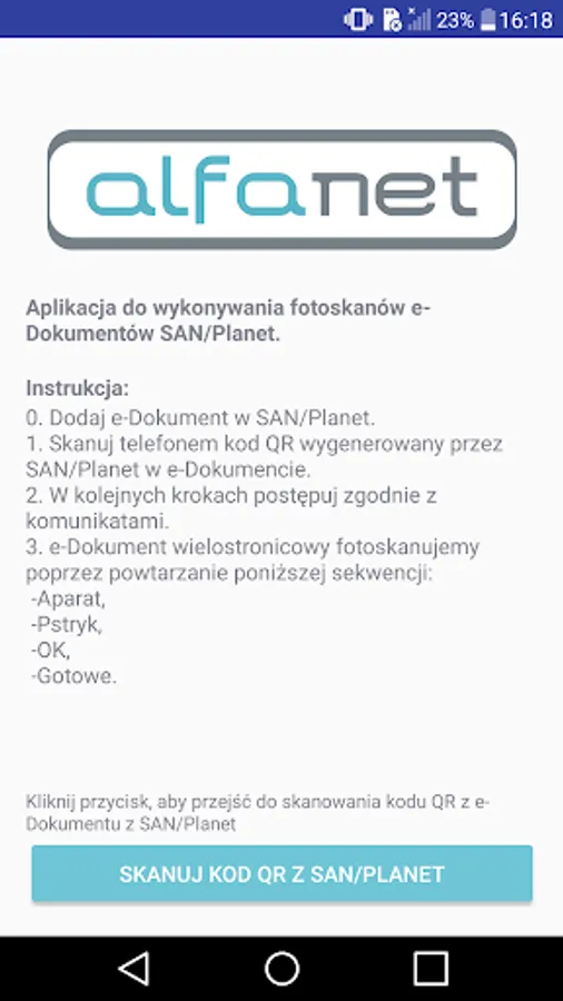 AN Fotoskan application is used to quickly and easily create scans paper documents and then placing them in the system SAN / PLANET by ALFA-NET.