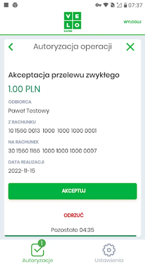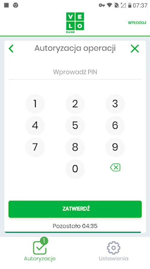 VeloToken is a modern and secure application with which you can log in and authorize instructions in VeloBank's electronic banking for corporate clients. Thanks to VeloToken, PUSH notifications will inform you about logging in and authorization of banking operations - you only enter the PIN code.