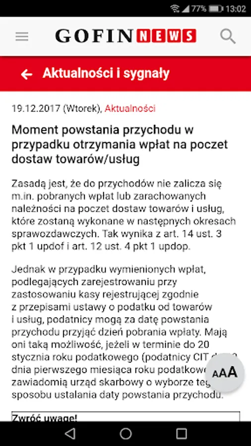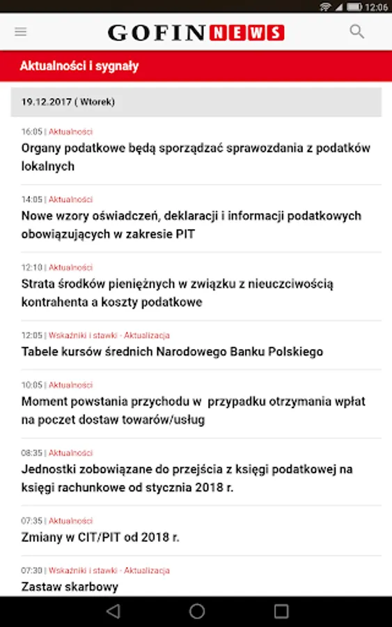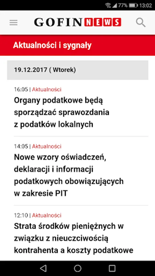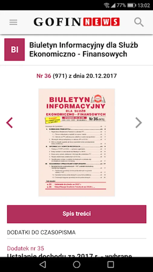 The application is GOFIN NEWS daily dose of news and help for Accountants and GOFINU subscribers access to mobile e-editions subscribed titles (the current numbers, additives, archive).