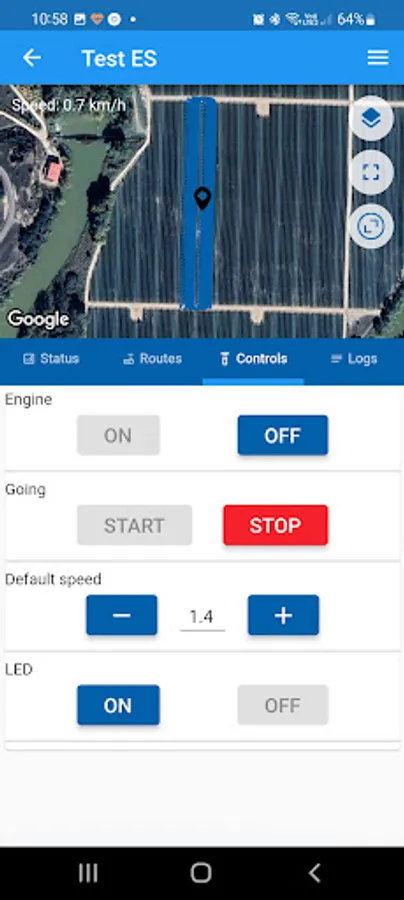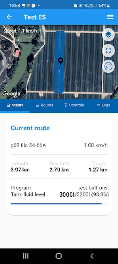 GOtrack app is remote interface for GOtrack systems. App user can easily check what is the status of his tractor and implement. With the app you can check tractor's position, present speed, % of a task completed. You can also start, stop the tractor or change the speed and implement program. Push and sound notifications informs an operator about the current problems with the implement so he can react immediately. Remote camera view is possible when installed on the tractor to check if an obstacle is properly detected.