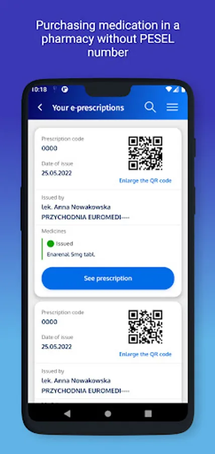 • buying a medication at a pharmacy without having to provide your PESEL number, just let the pharmacist scan the QR code
