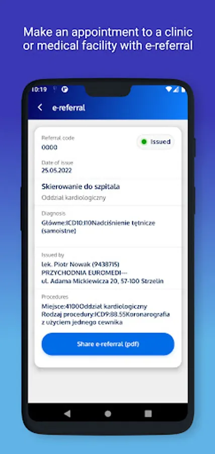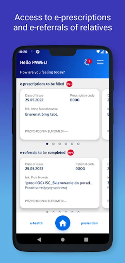 • quick and convenient access to e-prescriptions and e-referrals by phone, directly from the PUSH notification received