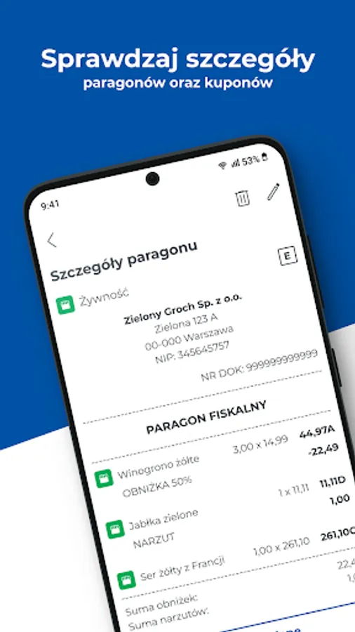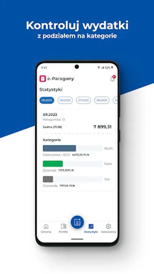 You have the option of adding a paper receipt to the application. The receipt can be divided into items and given a dedicated category. Thanks to this, you have even better control over your expenses.