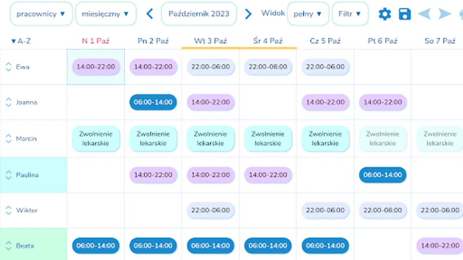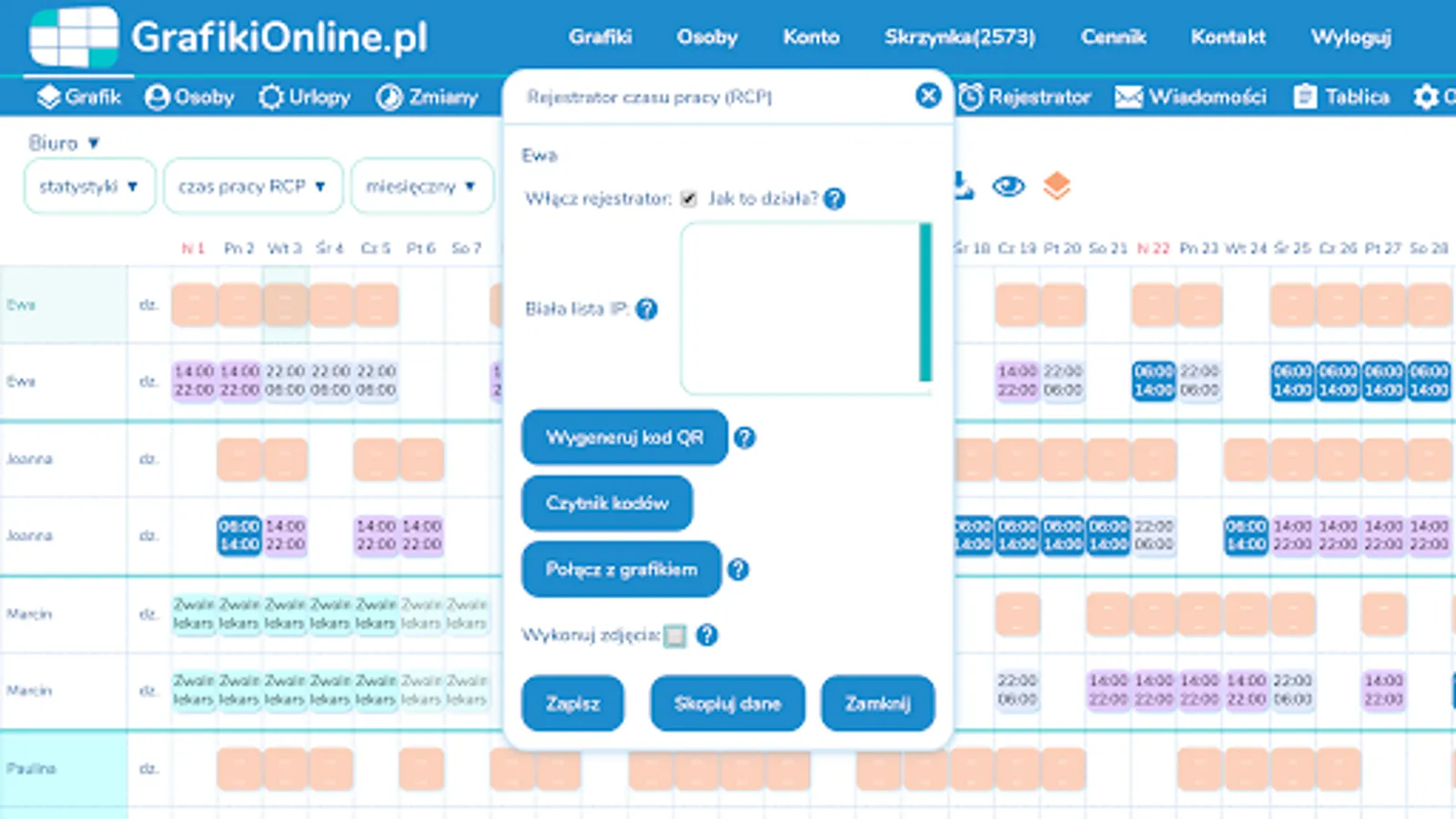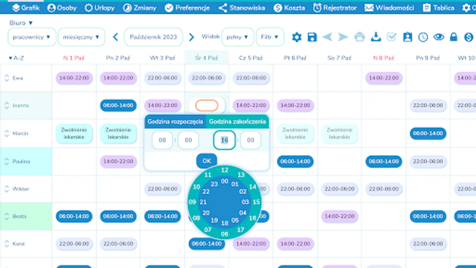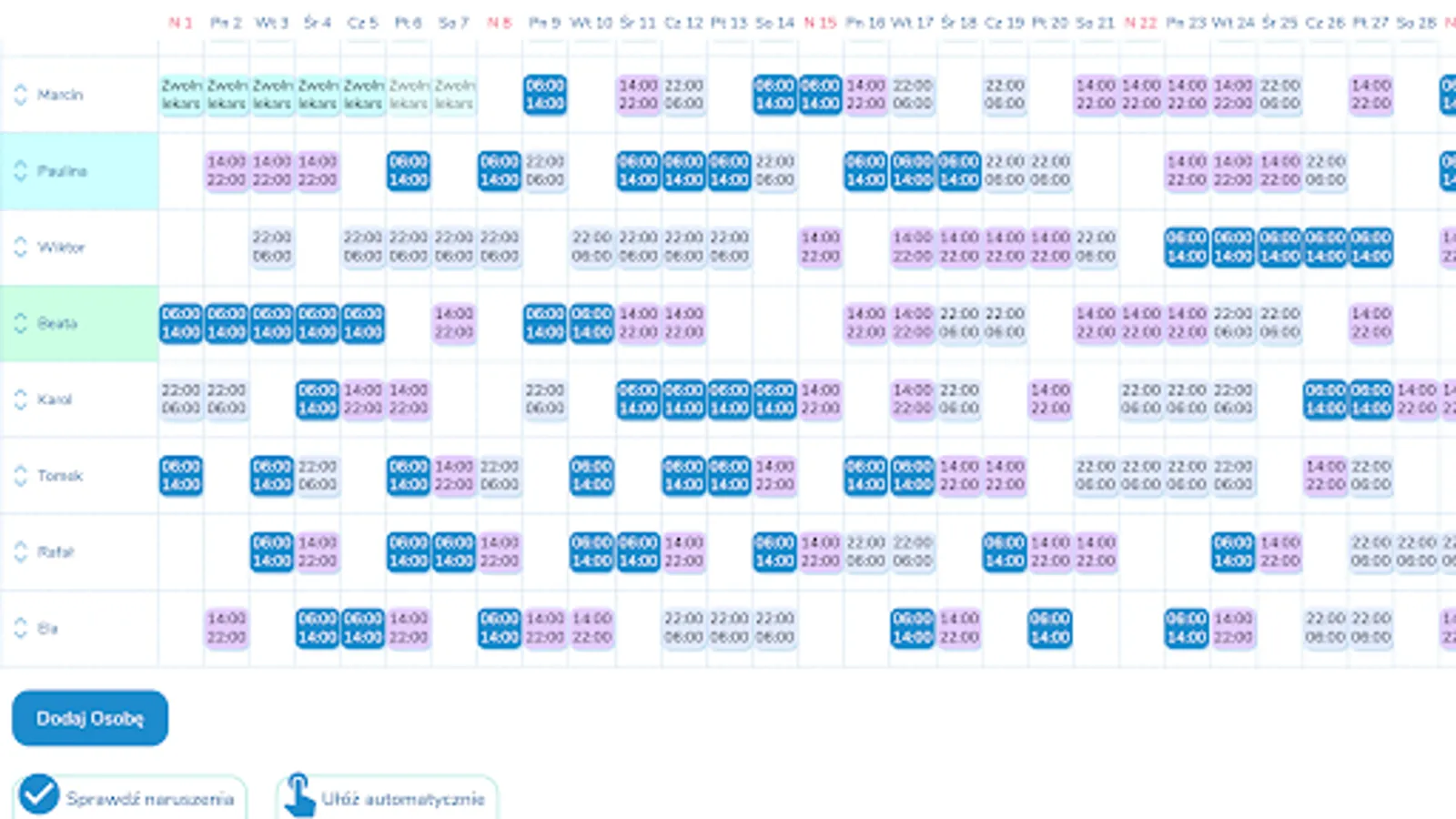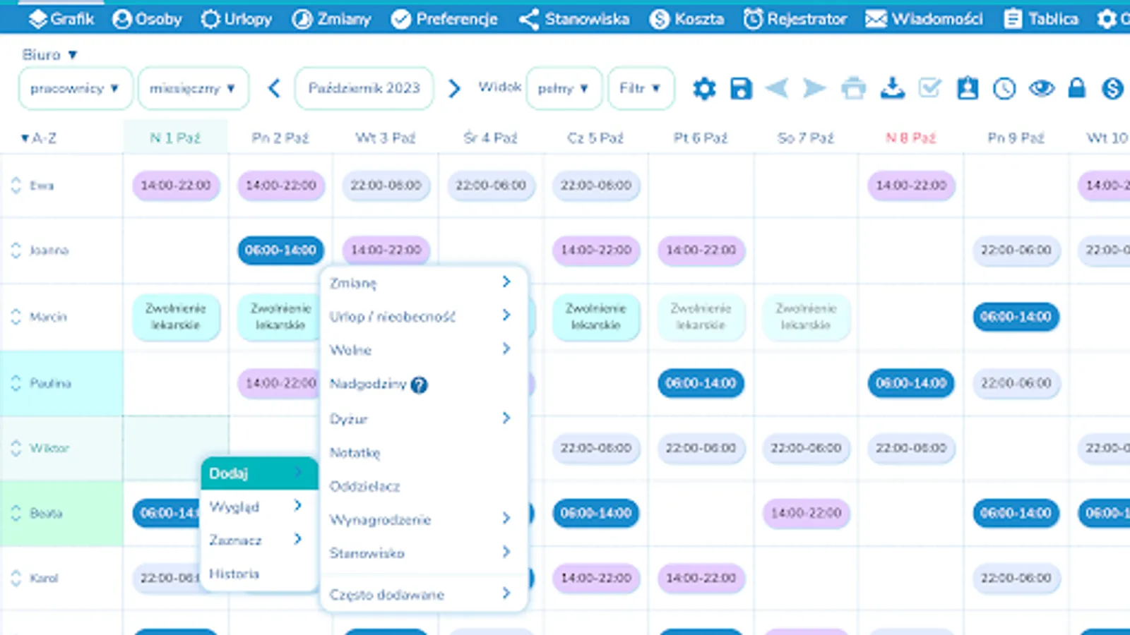 - the possibility of adding shift or holiday proposals by people from the work schedule,