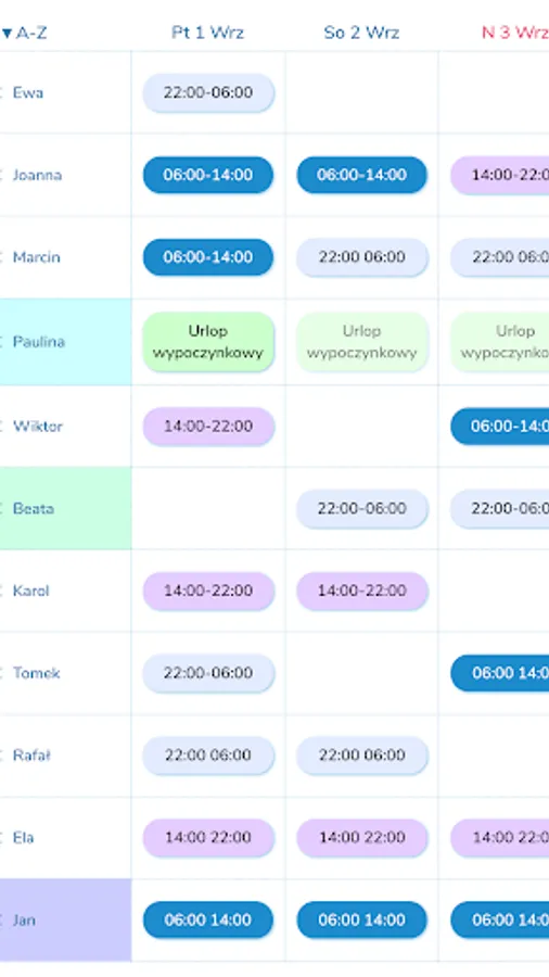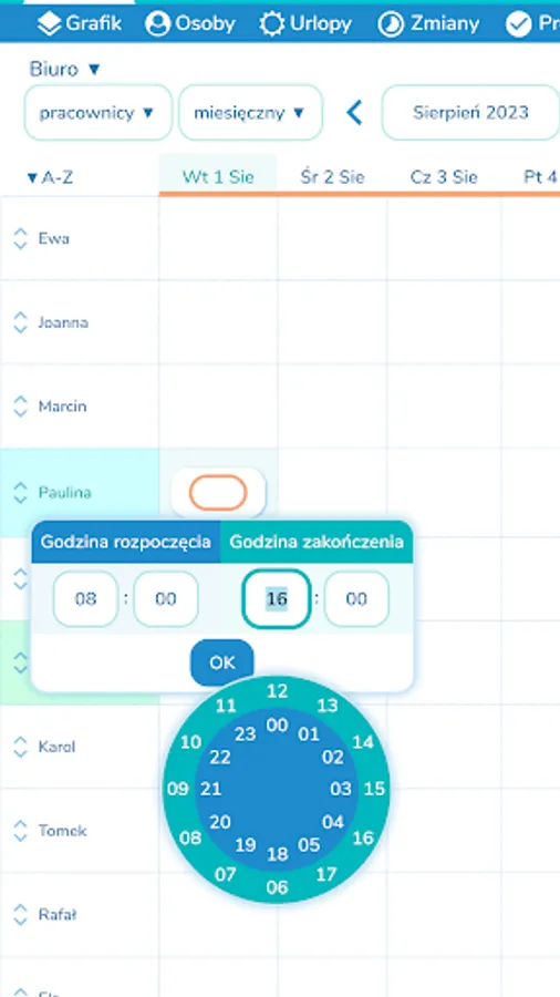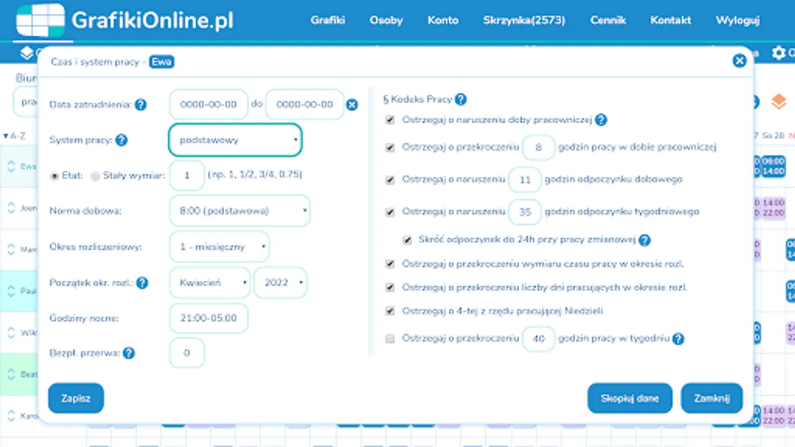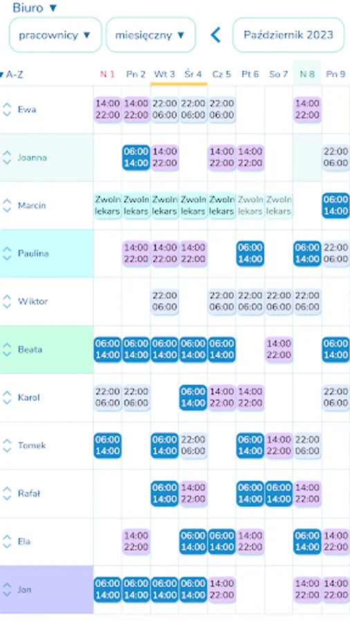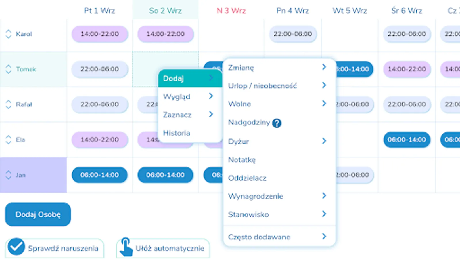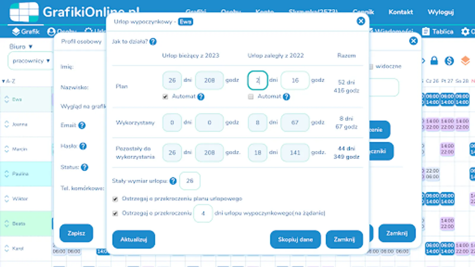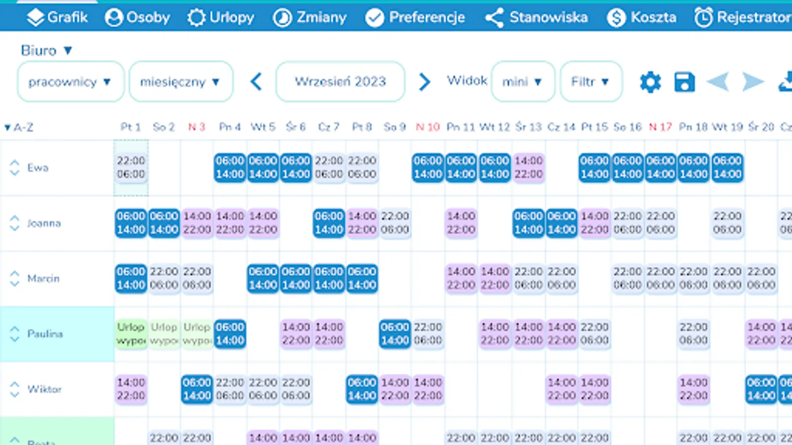 - the possibility of adding shift or holiday proposals by people from the work schedule,
