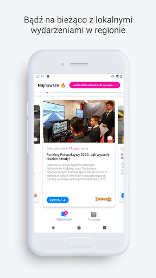 The application is directed mainly to the inhabitants of Łódź, Łowicz, Piotrków Trybunalski and the surrounding area. It is focused on the most important local and regional events prepared by the editorial team of Dziennik Łódzki. In the application you will also find photos, video and comments. We publish announcements and reports from events taking place. The portal explains and gives opinions, helps, creates a space for discussion.