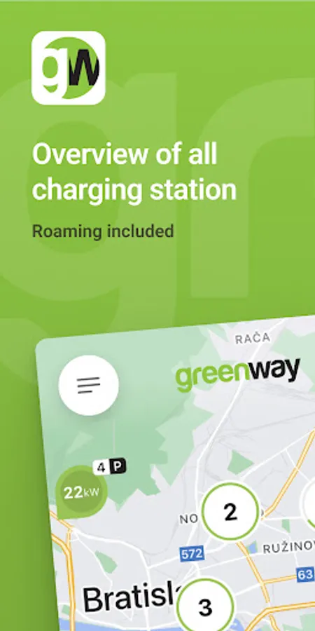 • Easily search for and find charging stations on the map – GreenWay chargers, 3rd party chargers and roaming partner chargers - all in the palm of your hand