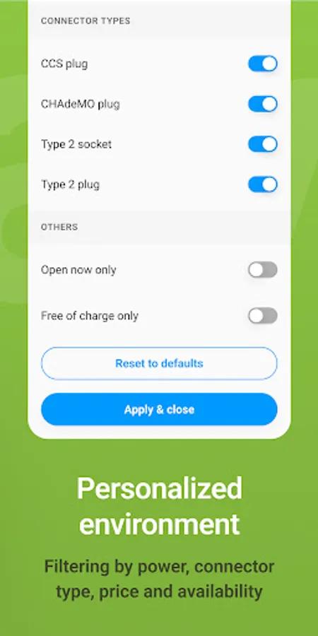 • Check real-time availability of chargers, photos, access descriptions and nearby POIs