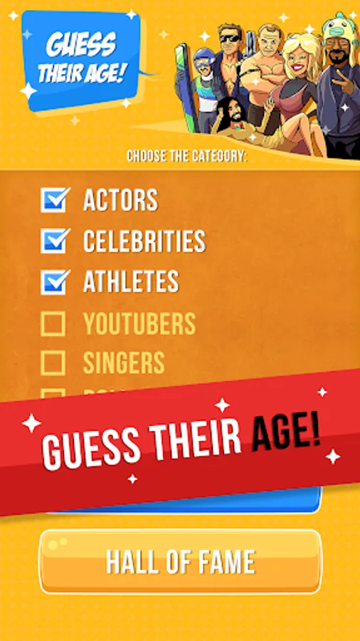Guess Their Age is a great fun for everyone. Guess how old famous actors, youtubers or celebrities are. Pick one of many categories and start the game guessing as many people as you can.