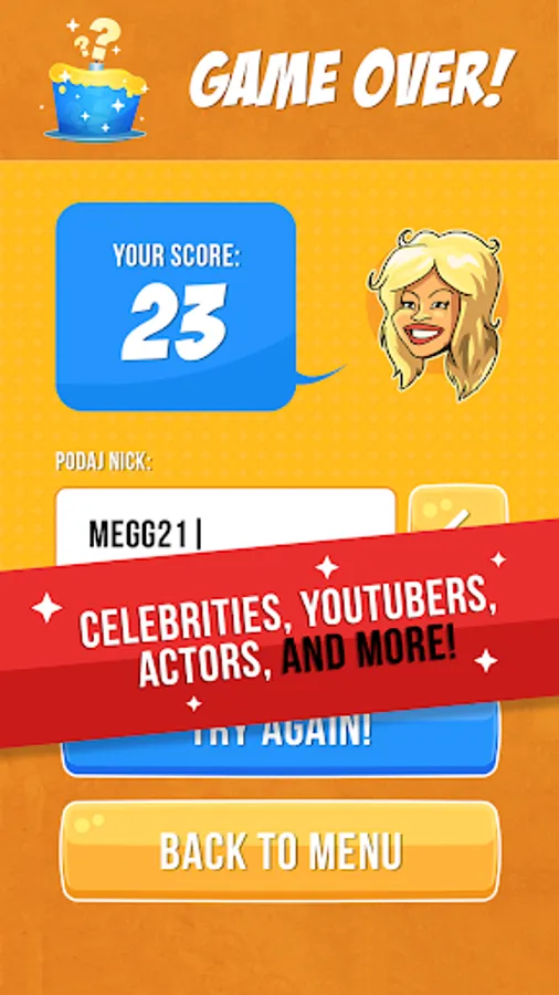 Girls and boys, young and old - everyone will find a quiz for themselves. Intuitive and simple game won't make you ponder over the rules for hours. Just install and play! You can play on your own or use the app on the parties to play age-guessing game with your friends. Thousands of characters, many categories and constantly updated database will provide endless entertainment. Find out age of your favourite film stars, celebrities, youtubers and many more.