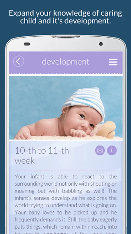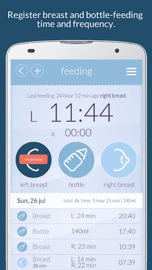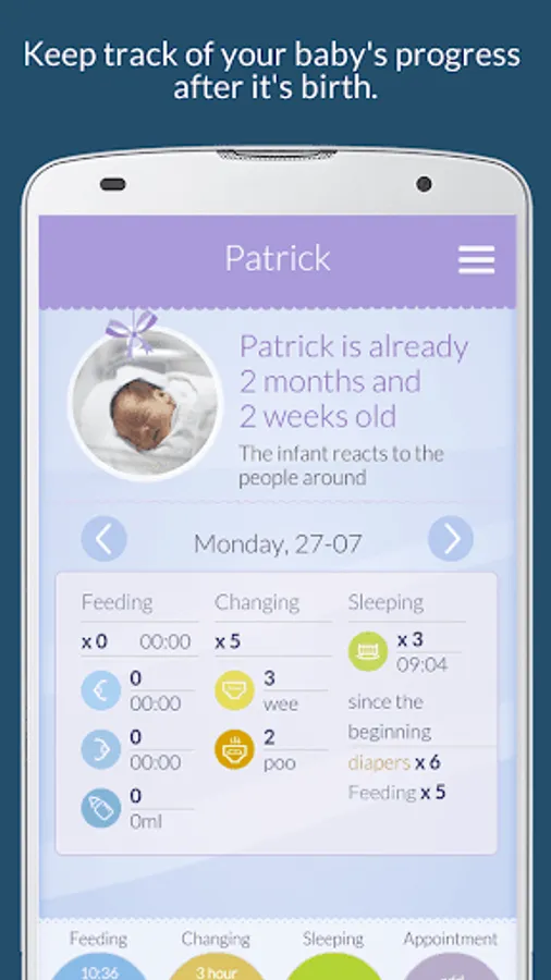 With this mode, our application will assist you in child raising and even the newborn baby cry or developmental leaps will be nothing to be afraid of. The regular monitoring of breast feeding and baby sleep time will make your parenting simply calm day by day.