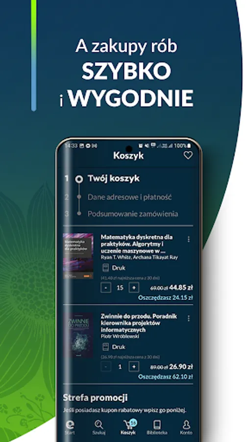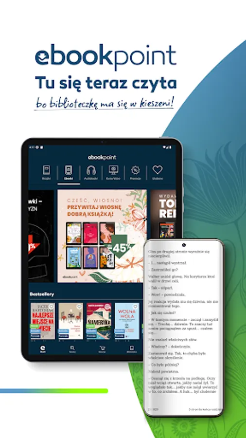 The Ebookpoint app will provide you with the best ebooks and audiobooks as well as specialized video courses. There are thousands of books for enthusiasts hungry for knowledge and readers looking for practical information and interesting entertainment. Books that you will not find in any other e-bookstore or application, publications of the most popular authors, such as Remigiusz Mróz, Olga Tokarczuk, George R. R. Martin or Stephen King. You have over 100,000 publications to choose from! Free e-books and audiobooks are also waiting for you, as well as extensive excerpts from the best titles. So don't wait, find something for yourself!