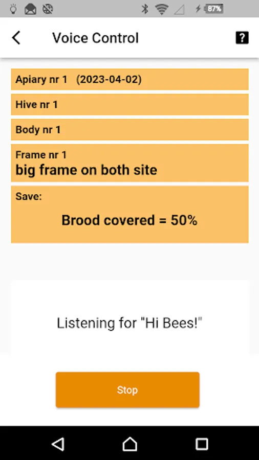 The application is used to collect and store information provided by the beekeeper's voice during hive inspections in the apiary. After the review, the beekeeper can use the collected information at any time in a convenient, intuitive way.