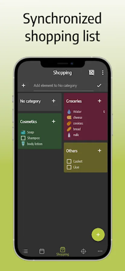 • Possibility to add quantities and units, eg Milk 1 pc.