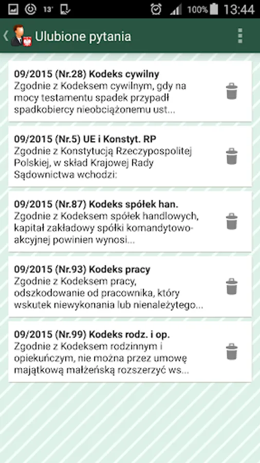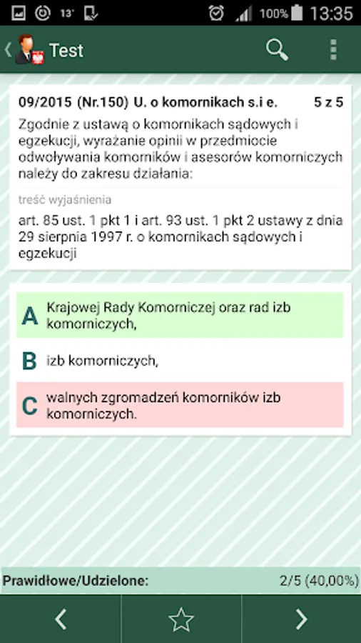Tests law for lawyers of all state exams for application bailiff (1050 quest. 2009-2015) prepared by the Ministry of Justice. Developed in cooperation with lawyers, solicitors, notaries and bailiffs. The application facilitates learning bailiff law students, the future bailiffs. Rely on the application bailiff bailiff with the application containing the test bailiff! In our offer there are also other applications Legal: The application attorney and attorney, notary application, License trustee.