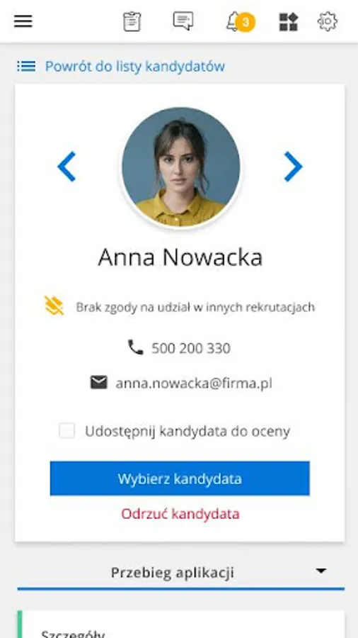 • Access to recruiting platform: new recruit tickets, contact with applicants, applications assessment and reviews