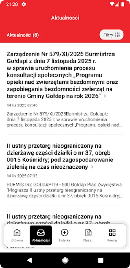The mobile app allows you to receive all messages and threat information sent by the Gołdap Municipal Office. It can also be a valuable source of information about the services provided by its owner.
