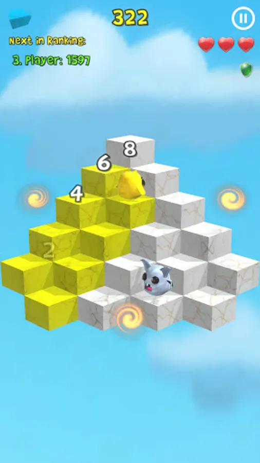 Jump across the board to change the colors of the stairs.