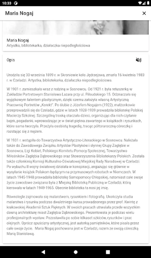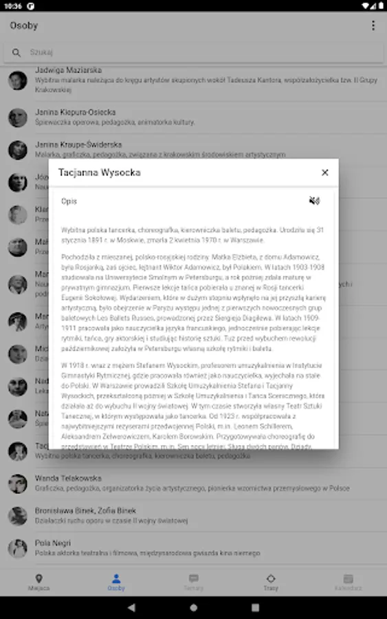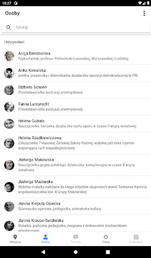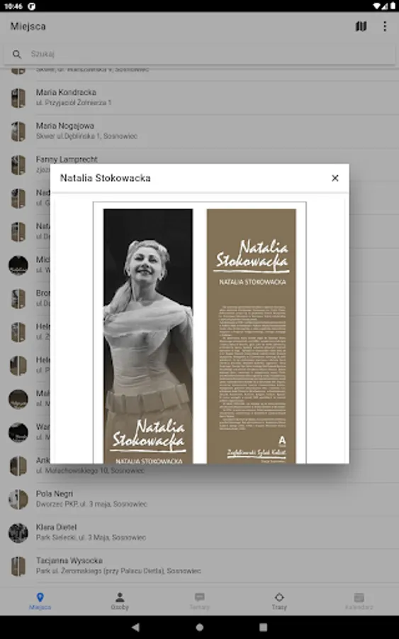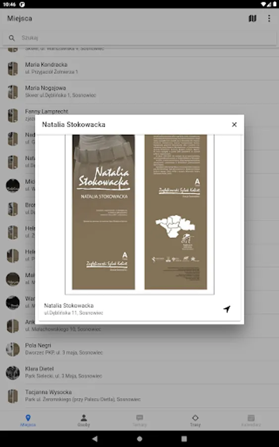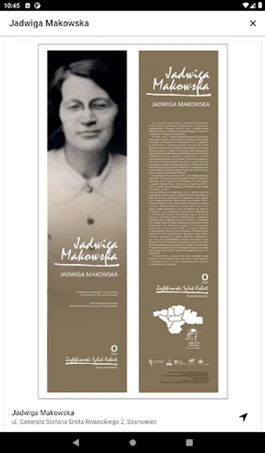 With the help of the mobile application, at any time for you, you will go on an extraordinary journey in the footsteps of the Sosnowka women. By choosing the route, you will receive information about which players from Sosnowka will meet on the route, where the stops are and how to get to them. The teacher will read the text in Polish and English.