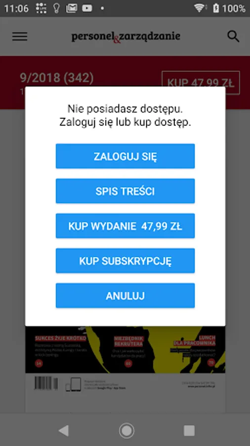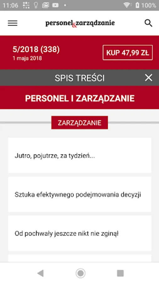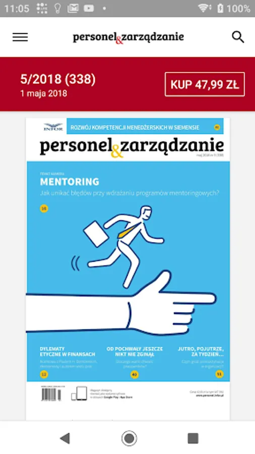 The application allows you to buy individual monthly issues at a price of PLN 47.99. In addition, the monthly "Staff and Management" is available in the subscription system: