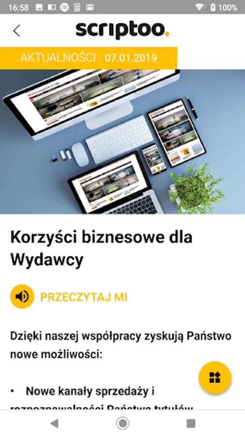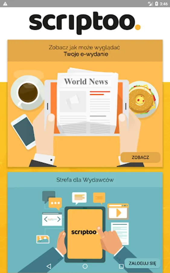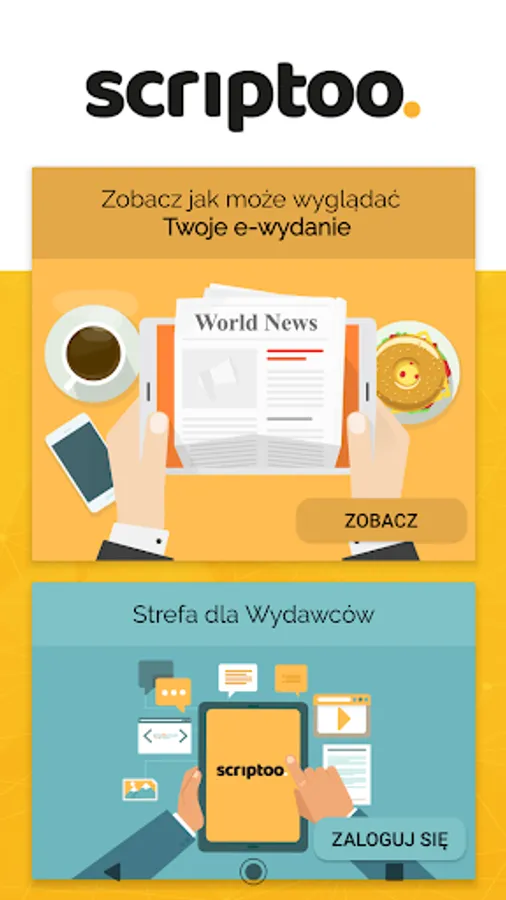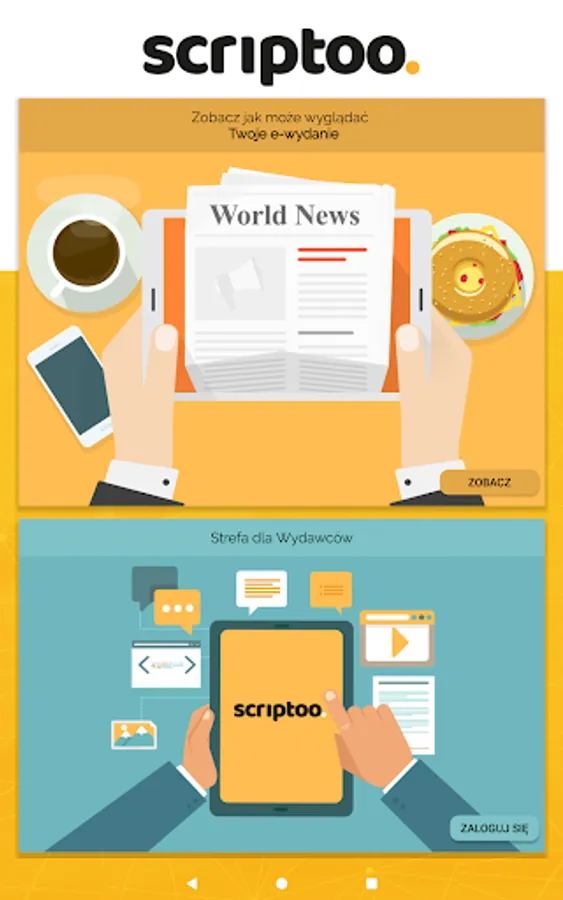 The Scriptoo application allows you to familiarize yourself with the possibilities that can be offered to readers receiving your content through a dedicated mobile application. The application will provide access to e-editions in a modern and friendly environment. It will also allow you to share additional content, in the form of a stream of news that can be used for editorial, marketing and advertising purposes or for other purposes. Thanks to this functionality and the push alert system, publishers increase the readers' engagement by offering interesting content at any time and place, and not only within traditional editions.
